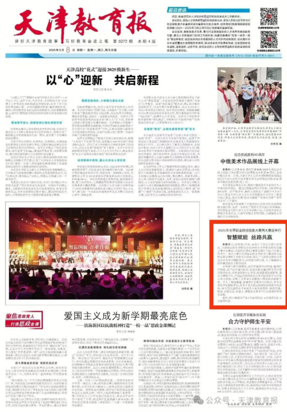 9月8日,《天津教育报》刊发文章《2025年世界职业院校技能大赛两大赛道举行 智慧赋能丝路共赢》,报道由塔什干国立交通大学承办、雷竞技be协办的2025年世界职业院校技能大赛中亚赛区(乌兹别克斯坦)赛事在塔什干国立交通大学举行。