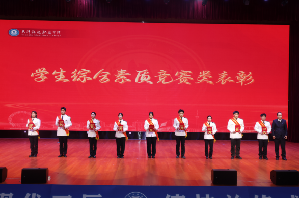 在综合素质竞赛领域,学子们在龙舟、射艺、跆拳道、田径及学生军事训练营中摘金夺银,展现了全面发展的卓越风采和学院准军事化管理的育人成效。在上合峰会国宴服务中,师生志愿者团队以“零失误”的卓越表现,向世界展示了新时代中国青年的专业素养与责任担当。在学科与创新创业的国际国内赛场上,海运学子更是奋勇争先,在2025年世界职业院校技能大赛、全国大学生创新大赛等高端赛事中屡获殊荣,彰显了扎实的专业功底与创新能力。此外,多位同学荣获天津市人民政府奖学金、天津市大学生自信自强年度人物、天津市大学生年度人物及提名奖(突出贡献奖)、天津市优秀学生(干部)等省市级荣誉,17名同学荣获国家奖学金,327名同学荣获国家励志奖学金,形成了星光璀璨的奋斗者群像。