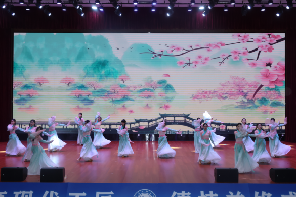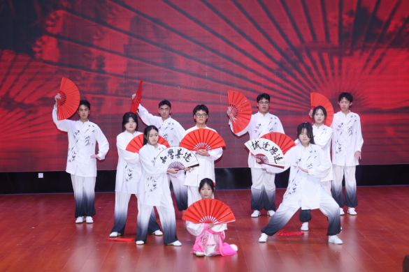 表彰环节中间,精彩纷呈的文艺节目轮番上演。学院工会选送的歌曲《亲爱的你啊》,以温情旋律唱响了师者仁心与“娘家人”的温暖陪伴;院团委带来的朗诵《与光偕行,向未来》,用铿锵之声表达了青年一代的理想与担当;古典舞《春意》以灵动舞姿描绘出万物复苏的盎然生机;融合武术与太极扇的《扇舞丹青》,刚柔并济,生动诠释了中华优秀传统文化的博大精深;最后,激昂澎湃的合唱《有我》,唱响了海运青年“奋斗正青春”的时代强音,将现场气氛推向高潮。