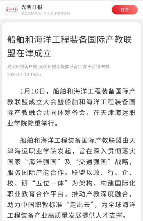 联盟的成立将有效破解船舶与海洋工程装备领域“人才荒”难题,为智能航运、绿色船舶等新兴方向储备专业力量。作为中国职教“走出去”的标杆项目,联盟将为金砖国家、东盟地区等提供了产教合作新模式。依托天津作为北方国际航运核心区的区位优势,联盟将助推京津冀海洋经济产业链协同发展,为区域经济发展注入新动力。