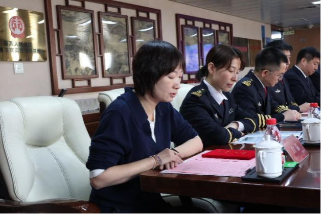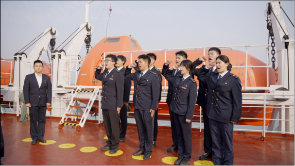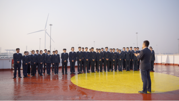 随后,一场庄严而富有航海特色的新团员入团仪式在“育鲲”轮甲板上举行。在院团委教师的主持下,一批积极进取的青年学子面向团旗庄严宣誓,正式加入中国共产主义青年团。大连海事大学教师代表与“育鲲”轮船员共同见证了这一时刻,并为新团员佩戴团徽。仪式上,新团员代表发言表示,将在今后的学习与航海实践中坚定理想信念,努力成长为有理想、敢担当、能吃苦、肯奋斗的新时代航海青年。庄严的誓词与飘扬的团旗,在蔚蓝港口的映衬下,进一步强化了青年的组织归属与使命认同。
